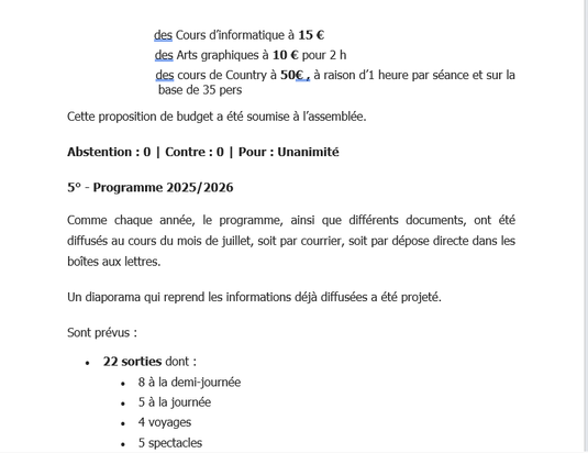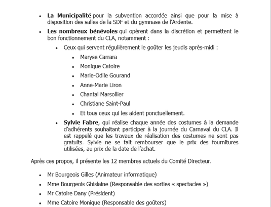 Art 7 : Les ressources de l’Association comprennent : les cotisations des membres, des subventions diverses (municipales, départementales) et des dons.