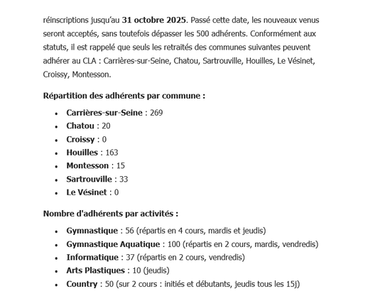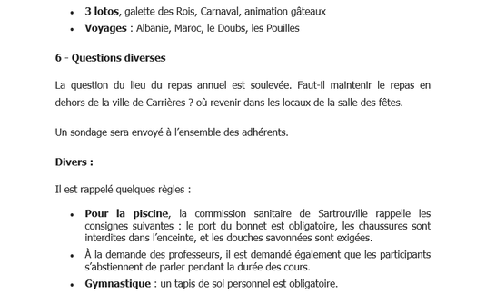 Art 3 : Le siège social est fixé à la Salle des fêtes Fernand Aubry, 1 rue Félix Balet à Carrières sur Seine 78420